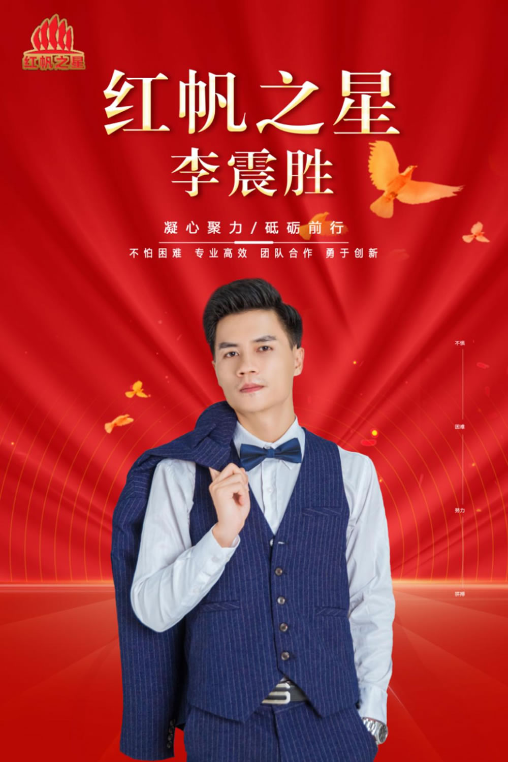 為進(jìn)一步發(fā)揮先進(jìn)人物示范效應(yīng),公司面向一線(xiàn)員工開(kāi)展“紅帆之星”評(píng)選活動(dòng),聚焦基層員工,發(fā)掘員工身邊的示范典型,營(yíng)造“比學(xué)趕超”的工作氛圍。共表彰“紅帆之星”90人次,通過(guò)整理“紅帆之星”事跡,在公司黨建公眾號(hào)進(jìn)行宣傳,并制作宣傳板在公司公共區(qū)域進(jìn)行展示,得到了員工的廣泛關(guān)注,發(fā)揮了標(biāo)桿正向引導(dǎo)的積極作用。