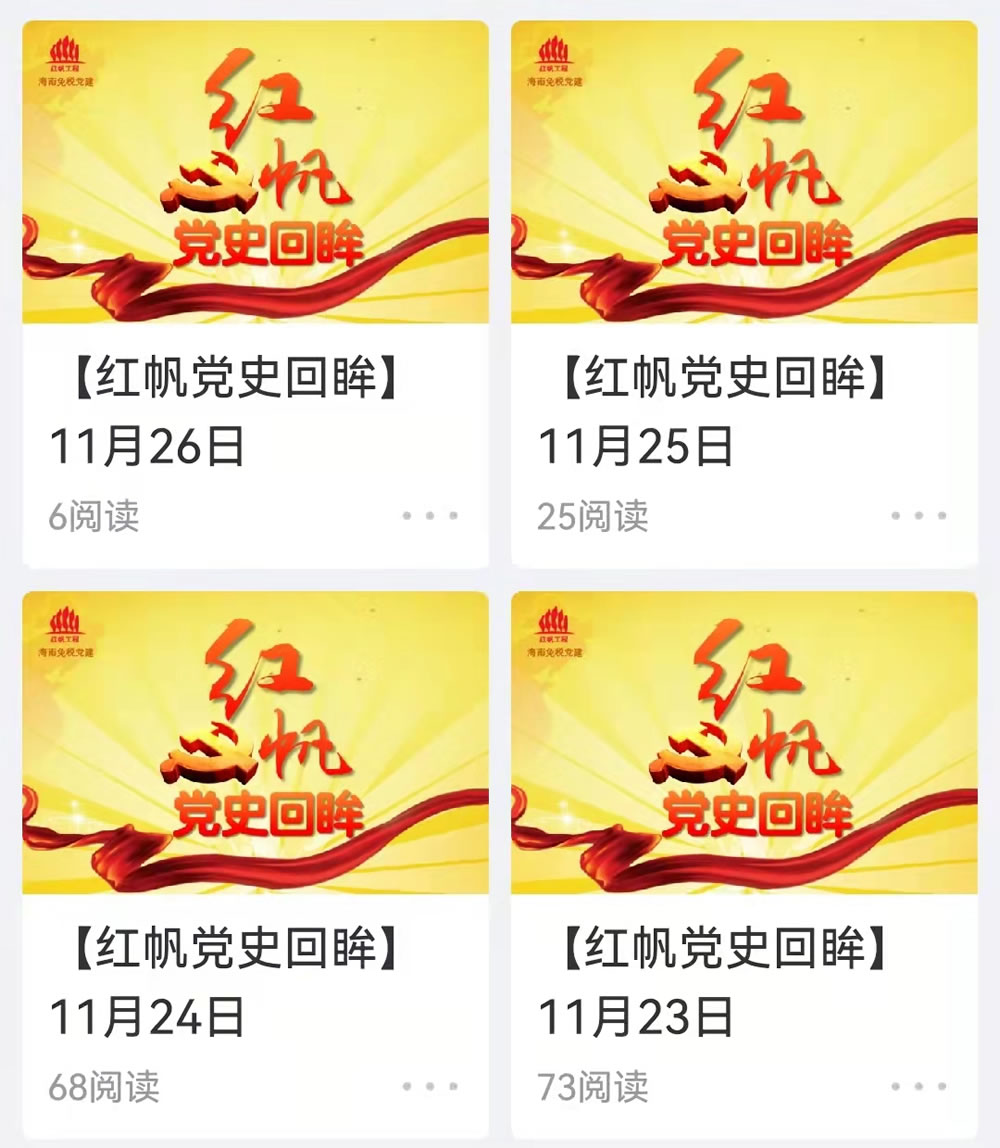 “紅帆工程”創(chuàng)建以來(lái),始終發(fā)揮思想政治引領(lǐng)作用。在公司黨建微信公眾號(hào)先后開(kāi)辟了“紅帆學(xué)習(xí)”“紅帆課堂”“紅帆講習(xí)堂”欄目,適時(shí)推送習(xí)近平新時(shí)代中國(guó)特色社會(huì)主義思想學(xué)習(xí)內(nèi)容、習(xí)近平總書(shū)記的重要講話(huà)、重要指示批示精神以及集團(tuán)公司、股份公司最新指示精神,共發(fā)送各類(lèi)推文100余篇。2021年黨史學(xué)習(xí)教育期間,為進(jìn)一步引導(dǎo)公司員工學(xué)黨史、知黨情、跟黨走,在公司OA辦公系統(tǒng)、美篇上設(shè)置“紅帆黨史回眸”專(zhuān)欄,每日通過(guò)系統(tǒng)和微信群向黨員推送“黨史回眸”學(xué)習(xí)資料220篇。相應(yīng)欄目的開(kāi)辦,進(jìn)一步強(qiáng)化了思想政治引領(lǐng)作用,激發(fā)了員工愛(ài)黨愛(ài)國(guó)的巨大熱情,凝聚了員工士氣,提升了黨建工作實(shí)效。