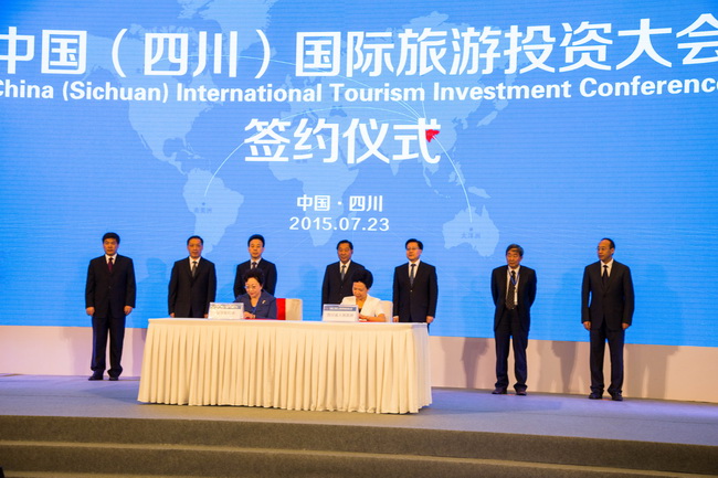 7月23日,集團姜巖總經(jīng)理、鄭江副總會計師、戰(zhàn)發(fā)部陳賢君總經(jīng)理、資產(chǎn)板塊田群總經(jīng)理、景區(qū)板塊曲濤常務(wù)副總經(jīng)理等一行參加了在成都舉辦的“中國(四川)國際旅游投資大會”。會上,姜巖總經(jīng)理代表集團與四川省政府簽訂了《促進中國港中旅集團與四川省政府關(guān)于旅游業(yè)發(fā)展戰(zhàn)略合作協(xié)定》。四川省委書記王東明、省長魏宏、國家旅游局局長李金早、中國房地產(chǎn)業(yè)協(xié)會會長劉志鋒等領(lǐng)導出席會議。中國國旅集團董事長兼總經(jīng)理王為民、華僑城集團公司副總裁劉平春、大連萬達集團董事長王健林、新希望集團董事長劉永好等120多家境內(nèi)外知名旅游企業(yè)負責人參加了會議。