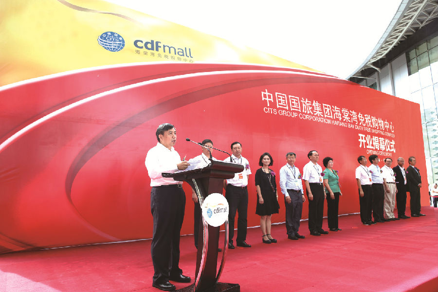 開業(yè)儀式上,王為民發(fā)表了熱情洋溢的講話。他首先代表國旅集團對各界的關心和支持表示衷心的感謝,隨后簡要介紹了國旅集團的基本情況、主要業(yè)務和今后發(fā)展方向。他回顧了海南離島免稅政策、三亞市內免稅店發(fā)展歷程。2007年,國旅集團提出“在海南開展離島免稅購物”的構想,并配合海南省委省政府爭取離島免稅政策;2011年,中免三亞免稅店作為離島免稅業(yè)務試點啟動,極短時間內便迅速成為海南省日均接待游客過萬的旅游景點之一,至今已累計接待顧客1200多萬人次?!奥糜渭用舛愘徫铩币殉蔀楹D下糜蔚男旅K蚺c會嘉賓介紹了海棠灣免稅購物中心項目的特點和優(yōu)勢,并表示項目的落成開業(yè)將極大地釋放海南離島免稅政策紅利,助力海南國際旅游島建設,也必將成為我國免稅業(yè)發(fā)展的里程碑。他說,海棠灣免稅購物中心是全球最大的免稅商業(yè)綜合體,總面積達12萬平米、集購物、休閑、娛樂、餐飲等多功能于一身,具有國際先進水準、地標性的建筑。它集合優(yōu)勢資源,招商引進了300個全球頂級時尚品牌和精心準備的超過10萬個單品;其中有的是攜手合作伙伴,打造的最新、最時尚的概念店、全球最大和亞洲最大的品牌旗艦店。國旅集團將以一流的品牌、一流的商品、一流的服務、一流的環(huán)境,為海南省、三亞市和來海南的廣大游客帶來持續(xù)不斷的驚喜和發(fā)現!展望未來,國旅集團將進一步堅定深耕海南旅游市場的信心和決心,通過積極整合旗下免稅、旅行社等多業(yè)務板塊資源,不斷發(fā)揮在資金、品牌資源、運營、管理等方面的優(yōu)勢,利用海棠灣免稅購物中心這個全新平臺,積極推動國際旅游島建設,為廣大游客奉獻更為豐富多彩的旅游購物體驗。他堅信,有社會各界的鼎力支持和關愛,有全體員工的智慧和奉獻,海棠灣免稅購物中心一定會拿出驕人的業(yè)績,成為國家海岸獨具魅力的亮麗風景,為海南旅游業(yè)發(fā)展做出積極的貢獻!