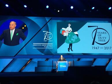 2017年10月1日—6日,全球免稅行業(yè)齊聚法國名城戛納,參加一年一度的世界免稅協(xié)會展覽會。受世界免稅協(xié)會邀請,中免集團總經(jīng)理陳國強一行12人參加了本次展會。來自世界各地的免稅運營商、品牌供應商、機場管理局和行業(yè)媒體共計2340人參加了盛會。在21,000平方米的場地上,共有514家公司展參,展示了數(shù)千種高端品牌,參展的公司和品牌均比去年有明顯增長。今年的大會首次開設了“數(shù)據(jù)村”,展示了AR、電子商務、商業(yè)智能、機器人等免稅和旅游零售領域的最新科技。