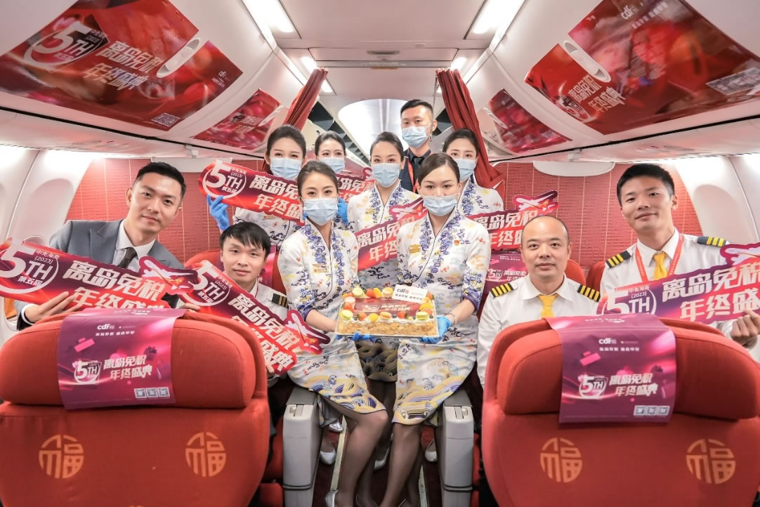 中免集團聯(lián)動航空資源推出主題航班活動,帶來了沉浸式的新鮮有趣互動體驗。11月15日,cdf??趪H免稅城聯(lián)合cdf??谌赵聫V場免稅店、cdf??诿捞m機場免稅店,聯(lián)動海南航空,于HU7782北京-??诤桨嗌祥_展主題航班活動,通過營造節(jié)慶氛圍,開展互動問答等趣味活動,與機上旅客積極互動,并予以乘坐該航班旅客相應購物權益。cdf三亞國際免稅城也在HO1747南京—三亞的吉祥航空主題航班上為乘客精心準備了主題蛋糕及消費權益,在豐富乘機體驗的同時,更增強旅客對于免稅及活動的了解。