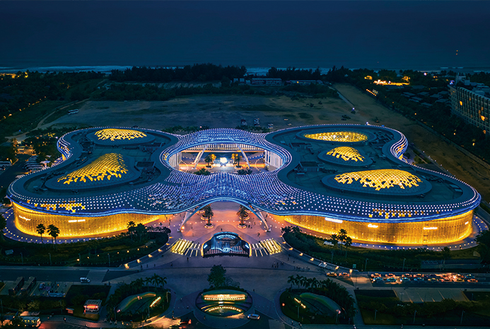 三亞國際免稅城建筑設(shè)計靈感源于有著“國艷”之稱的海棠花,采用世界知名建筑設(shè)計公司打造的連續(xù)空間曲面鋼結(jié)構(gòu),如同一朵嬌艷的“海棠花”盛開在蔚藍海岸線。由國際知名室內(nèi)設(shè)計團隊傾力打造的室內(nèi)空間,也將藝術(shù)群落與時尚元素巧妙的結(jié)合起來。不論是美輪美奐的“海棠”夜景,還是獨具匠心的室內(nèi)設(shè)計,都將為游客帶來獨特的視覺刺激、感官沖擊和豐富的購物享受。