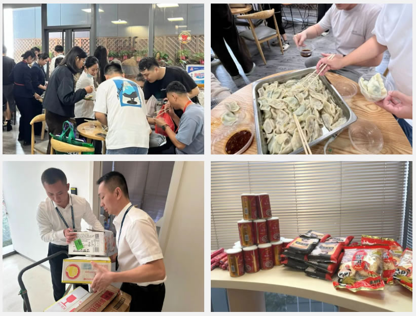 “開(kāi)飯啦,大伙快來(lái)嘗一嘗!這里有現(xiàn)包的白菜肉、酸菜肉、韭菜肉、香菇肉的餃子;黑芝麻湯圓和花生餡湯圓在那邊。看看想吃什么?!睙狒[的茶水間人聲鼎沸,大家排隊(duì)打完餐后圍坐在圓桌前開(kāi)始享用美食。春節(jié)期間,中免鳳凰機(jī)場(chǎng)店里年味十足,六樓辦公區(qū)保障餃子和湯圓,機(jī)場(chǎng)隔離區(qū)休息室還擺放了零食供職工們隨時(shí)補(bǔ)充能量,讓職工在堅(jiān)守的同時(shí)感受來(lái)自公司的濃濃關(guān)愛(ài)和“家”的溫暖。