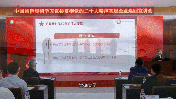2023年,為引導(dǎo)廣大干部職工進(jìn)一步把思想統(tǒng)一到黨的二十大精神上來,把力量凝聚到黨的二十大確定的各項(xiàng)任務(wù)上來,三亞店黨委積極創(chuàng)新形式,通過舉辦基層理論宣講會(huì)、分享交流會(huì)、線上學(xué)習(xí)培訓(xùn)、先進(jìn)典型宣傳、國企開放日等形式,從身邊人講身邊事著手,利用cdf免稅先鋒、黨建文化長廊、社會(huì)主流媒體等全媒體矩陣平臺(tái),大力弘揚(yáng)社會(huì)主旋律,提振員工精氣神,展現(xiàn)中央企業(yè)大國頂梁柱的良好社會(huì)形象。