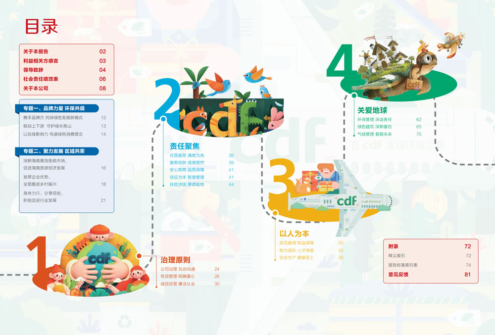值得注意的是,本次ESG報(bào)告封面和部分內(nèi)頁插圖選自“在cdf發(fā)現(xiàn)環(huán)保之美”環(huán)保公益海報(bào)設(shè)計(jì)大賽獲獎(jiǎng)作品,希望通過異彩紛呈的審美創(chuàng)意、元素碰撞,進(jìn)一步傳遞綠色發(fā)展的美好愿望。