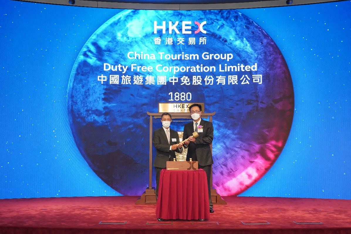 2022年8月25日,中國(guó)中免在香港聯(lián)合交易所主板正式掛牌上市(證券簡(jiǎn)稱:中國(guó)中免 證券代碼:1880.HK)。此次赴港上市,公司將進(jìn)一步搭建國(guó)內(nèi)、國(guó)際雙融資平臺(tái),有助于公司進(jìn)一步提高品牌影響力及國(guó)際市場(chǎng)知名度,鞏固全球旅游零售商的龍頭地位,為公司未來持續(xù)快速發(fā)展注入強(qiáng)勁動(dòng)能。