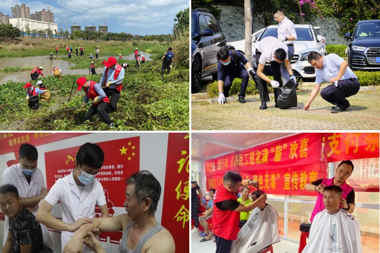 中免(??冢┩顿Y公司黨支部聚焦服務工程建設、豐富企業(yè)文化、踐行社會責任等方面把實事辦實辦好。為??趪H免稅城項目員工“送清涼”,購置了防暑防曬物資,備好冰鎮(zhèn)綠豆湯,不定期推出“驚喜菜”。精心打造“黨史文化墻”,設立“圖書角”,開展“微課堂”讀書活動,為員工訂閱報紙期刊,開展職工趣味運動會、友誼籃球賽,全面更新公司形象展示標識和宣傳欄,設置新人榜,不斷打造企業(yè)文化新亮點。黨支部聯合當地工會、共青團等機構共同開展環(huán)保志愿活動和公益普法活動,提供免費體檢、義剪服務,以實際行動關愛自貿港基層建設者,彰顯央企風范。