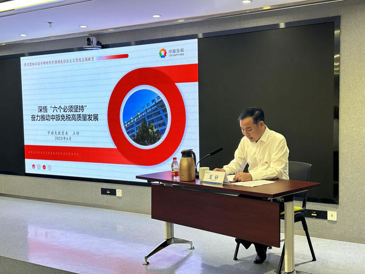 為貫徹落實習近平總書記提出的“領(lǐng)導干部要上講臺、講黨課,以身作則、以講促學”的政治要求,按照黨中央關(guān)于主題教育部署要求和集團黨委工作安排,6月25日上午,中旅免稅黨委書記、總經(jīng)理、主題教育領(lǐng)導小組組長王軒同志以《深悟“六個必須堅持”奮力推動中旅免稅高質(zhì)量發(fā)展》為題,講授學習貫徹習近平新時代中國特色社會主義思想主題教育專題黨課。中旅免稅黨委委員、副總經(jīng)理王延光主持。集團主題教育第一巡回指導組成員楊翠華、李征、劉展愷線上列席指導。